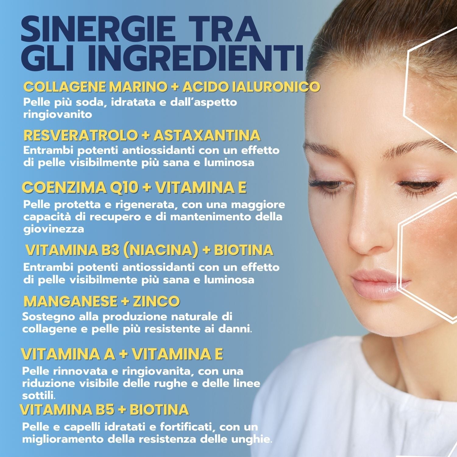 ♾️ SINERGIA PERFETTA PER MASSIMI BENEFICI - Ogni ingrediente della nostra formula è scelto per lavorare in sinergia con gli altri, massimizzando i benefici per pelle, capelli e unghie. La combinazione di collagene, acido ialuronico, resveratrolo e vitamine è pensata per offrire un supporto ottimale al benessere generale. Ideale per chi cerca un prodotto multifunzione che ottimizza il benessere globale del corpo.